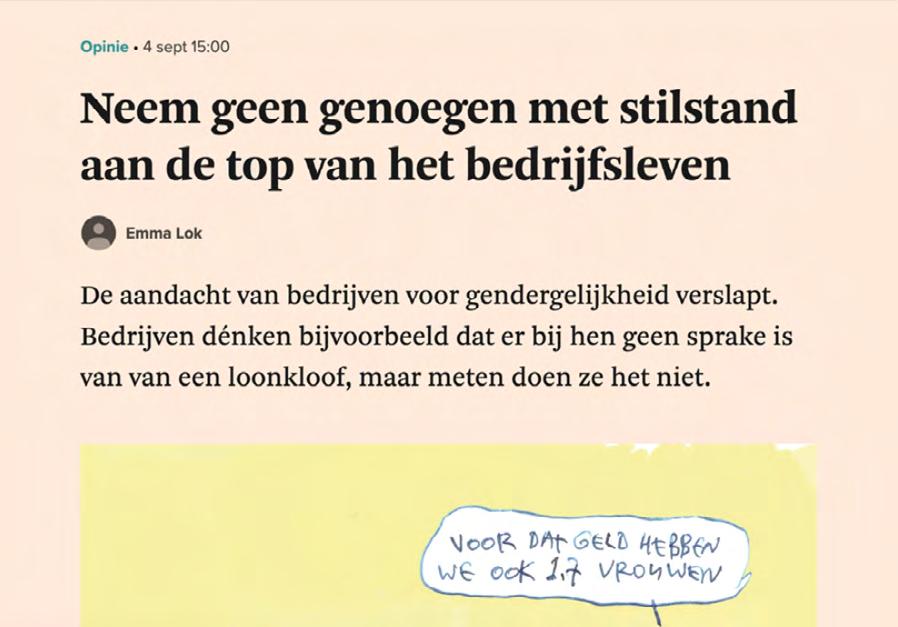 Opiniestuk in het FD over gendergelijkheid op de arbeidsmarkt, waarin Emma pleit voor actie bij overheid en bedrijfsleven.