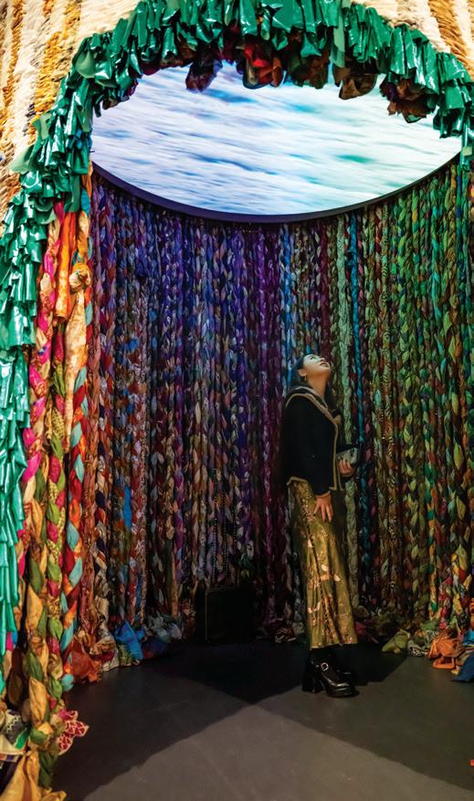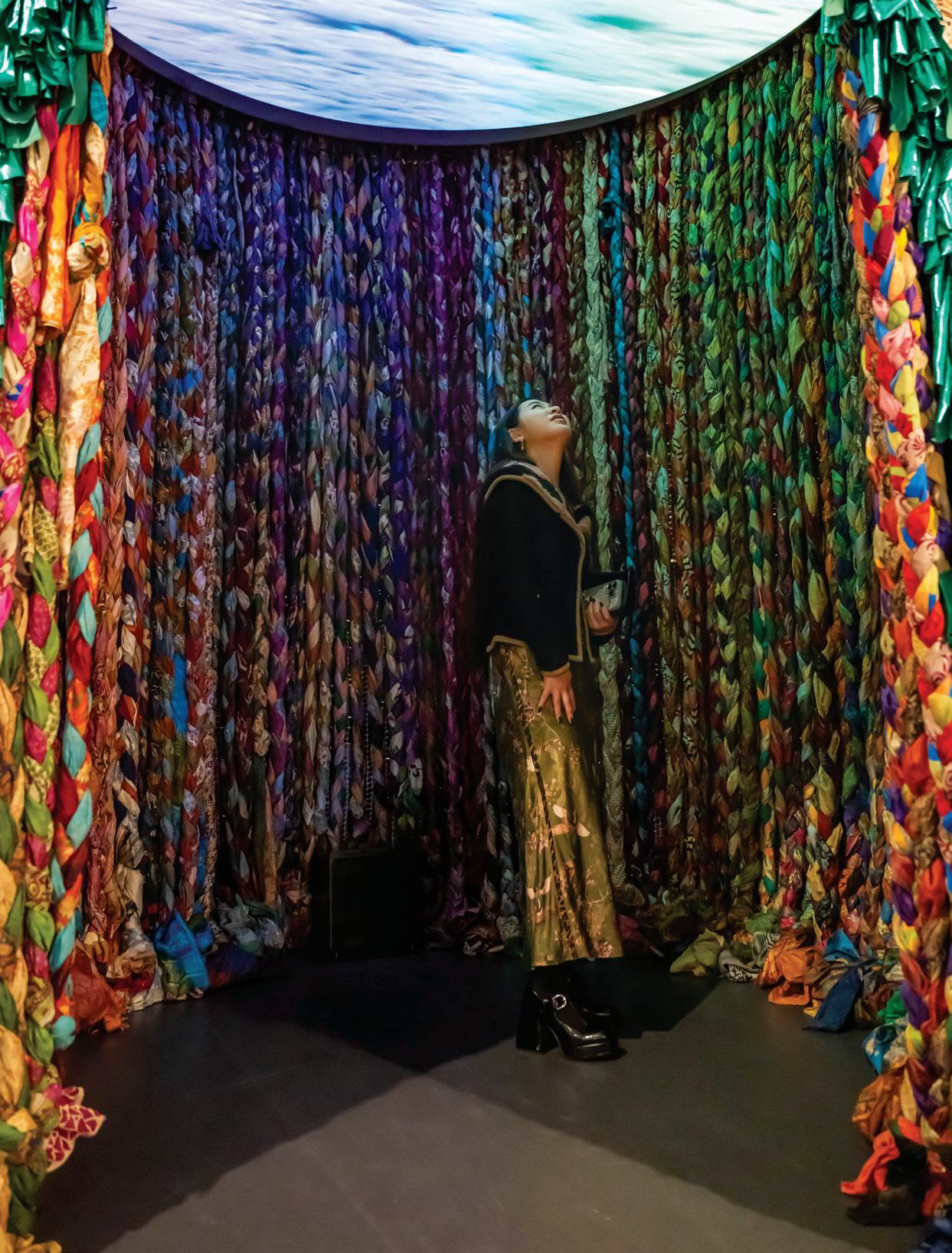 A visitor experiences Suchitra Mattai’s installation siren song (2022), on view in Suchitra Mattai: Myth from Matter, September 20, 2024–January 12, 2025