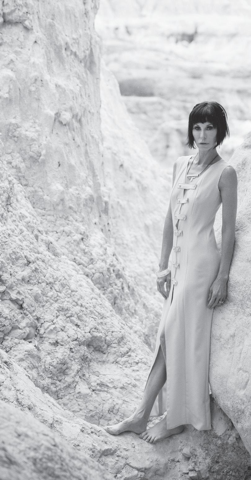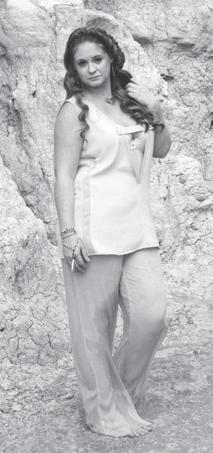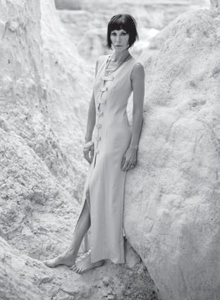 One of my favorite silhouettes is the softly falling full-leg pant. Because of the stretch and lightness of the fabric , it falls away from you instead of clinging. Another great can ’ t-be-beat silhouette is the trapeze dress or top. Fitted at the shoulder and through the bust but falling loosely over the waist and hip is a cut made for cool comfort on hot days—and it ’ s also a very forgiving style. Maxi dresses or tunics are perfect for light fabrics , as are the long flowing vests worn over pants , shorts , or anything you please! Picture how glamorous you will look with that beautiful fabric floating behind you.