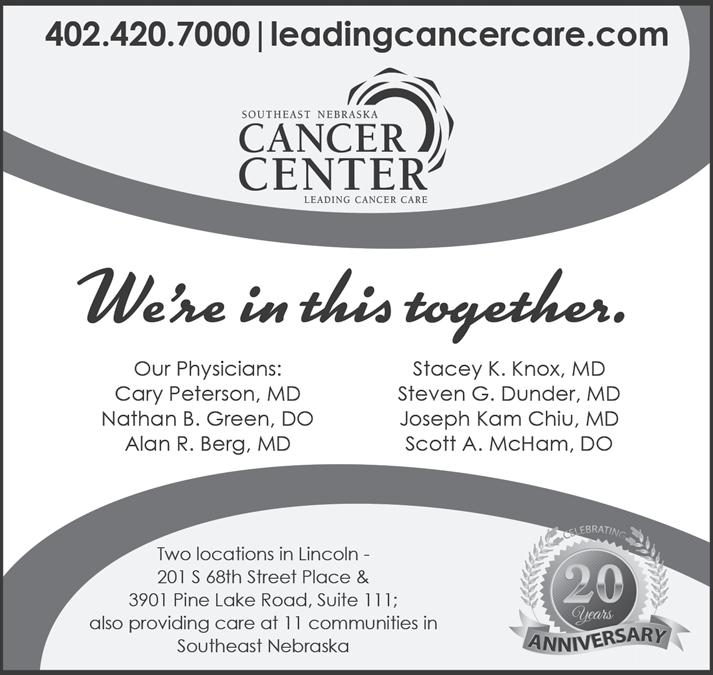 Husker Rehabilitation and Wellness Center, PC, has four locations—two in Lincoln, one in Beatrice, and one in Fairbury. To reach the Lincoln North site, call 402-477-3110. To reach the Lincoln South office, call 402-261-4739. For more information about Husker Rehabilitation and Wellness Center, PC, visit their website at www.huskerrehab.com. WE