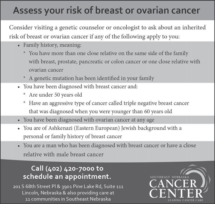 What is hereditary cancer screening, and do you need it? Find out more in our interview with Southeast Nebraska Cancer Center on page 24.