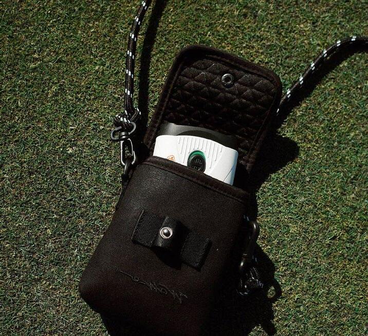 Protect your rangefinder, camera, or valuables. It features a fold-over flap with a durable metal snap for easy access, plus a detachable rope sling. Sling it over your shoulder or clip it onto your golf bag!