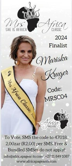 I am Mariska Kruger, from Rustenburg and I am currently a businesswoman and a Mrs Africa Classic 2024 Finalist. I won the Women of the Year Award in 2018 from Women’s Lifestyle. I was also recognized for Excellence in the Community. It was an incredible honour being recognized for my dedication to excellence in the community. It opened doors for meaningful connections, collaborations, and opportunities to amplify the impact of my work.