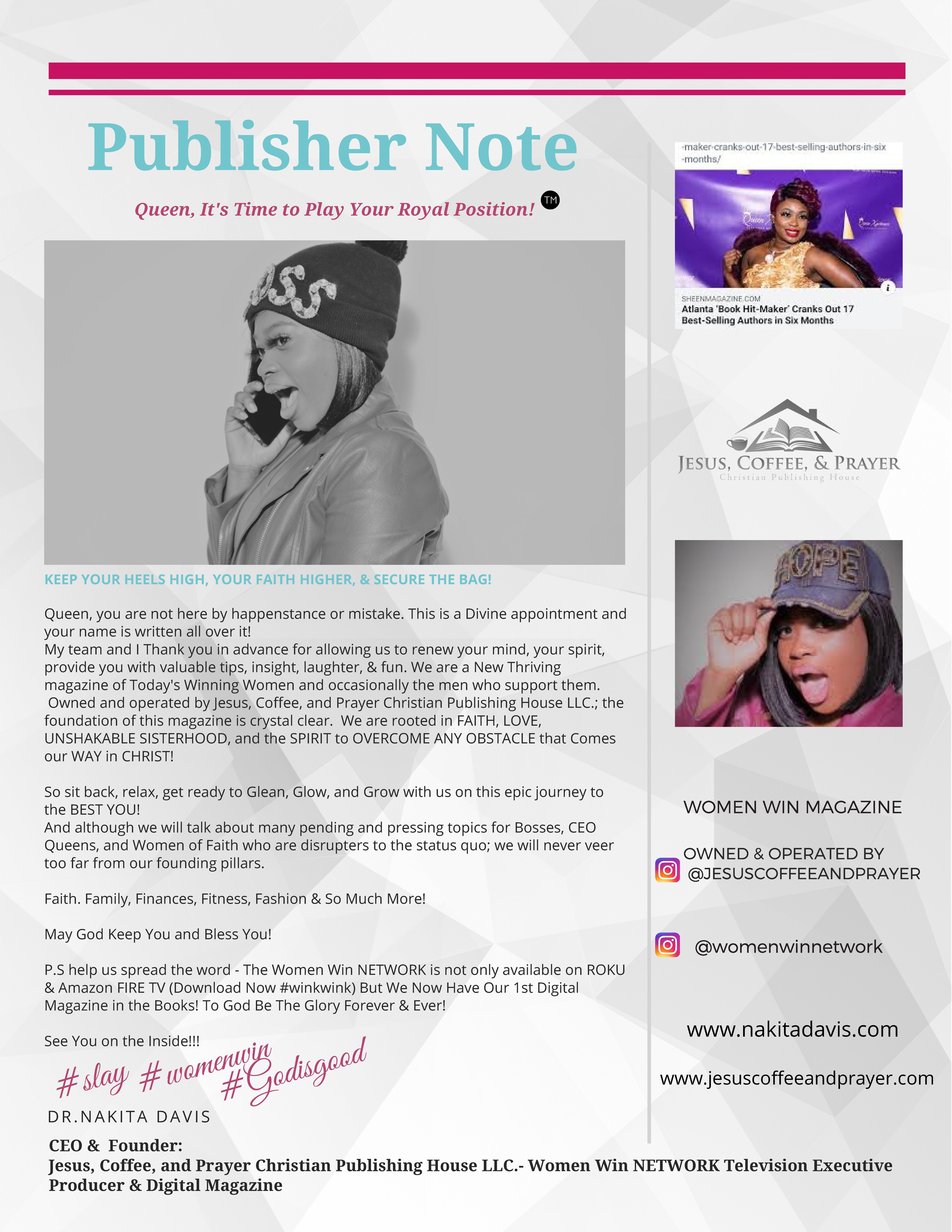 HERE AT THE WOMEN WIN NETWORK DIGITAL MAGAZINE WE GIVE GOD ALL THE GLORY AND ALL THE PRAISE FOR WHAT HE HAS DONE!