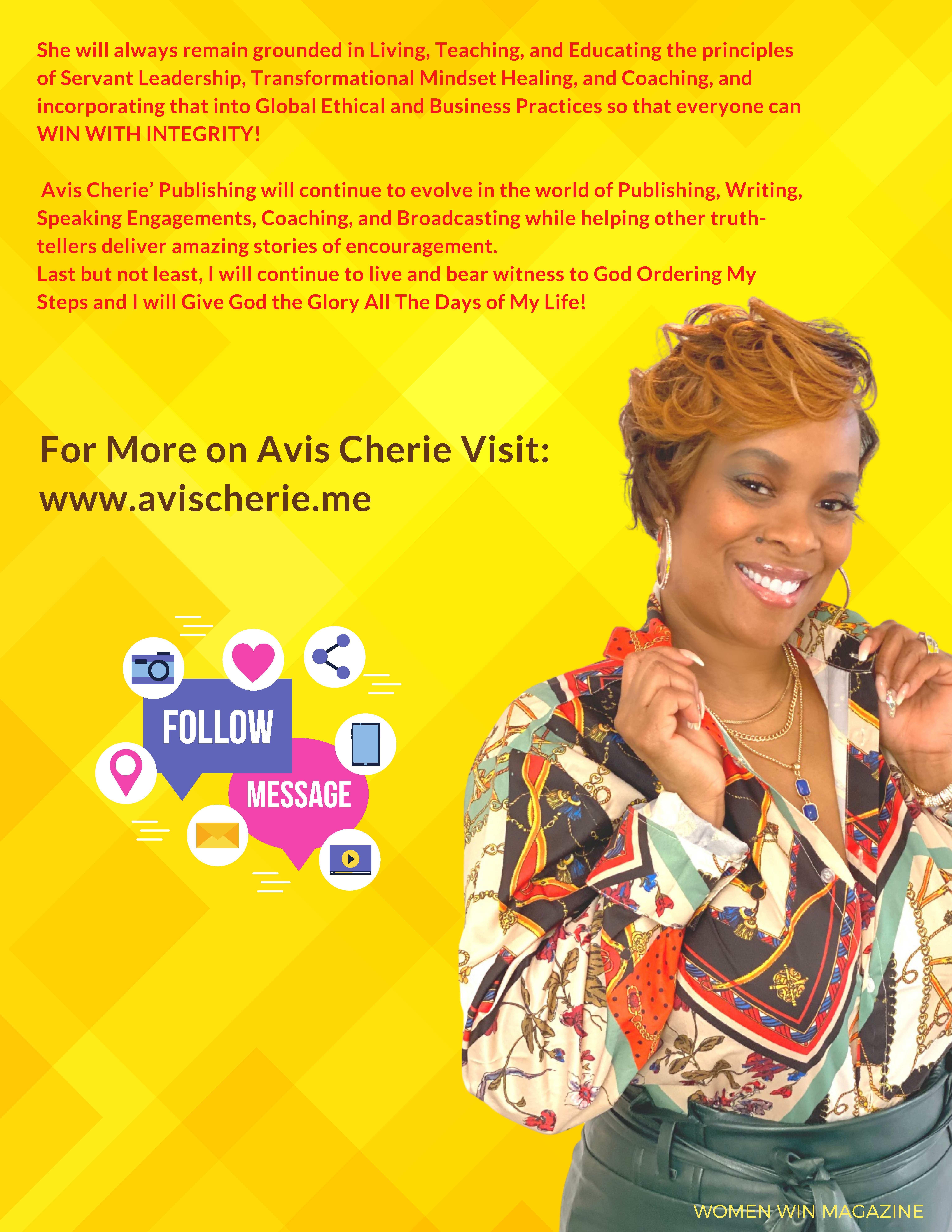 Avis Cherie' is a Servant Leader and embraces her God-Given abilities to dissect the ails in one’s life, uproot hope & transform lives