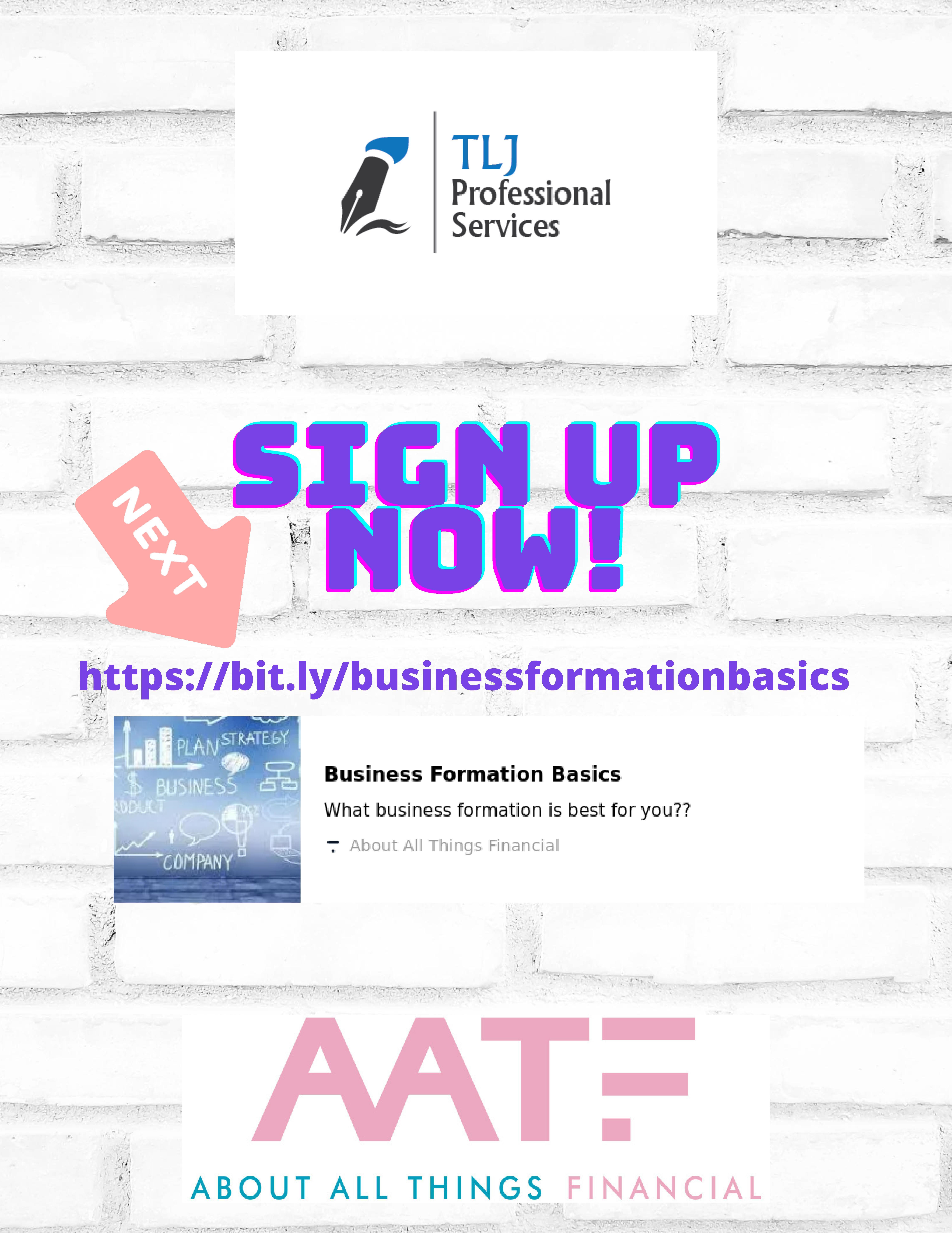 At About All Things Financial, a division of TLJ Professional Services, have entrepreneurs and small businesses in mind when we craft courses and services to fit your needs.