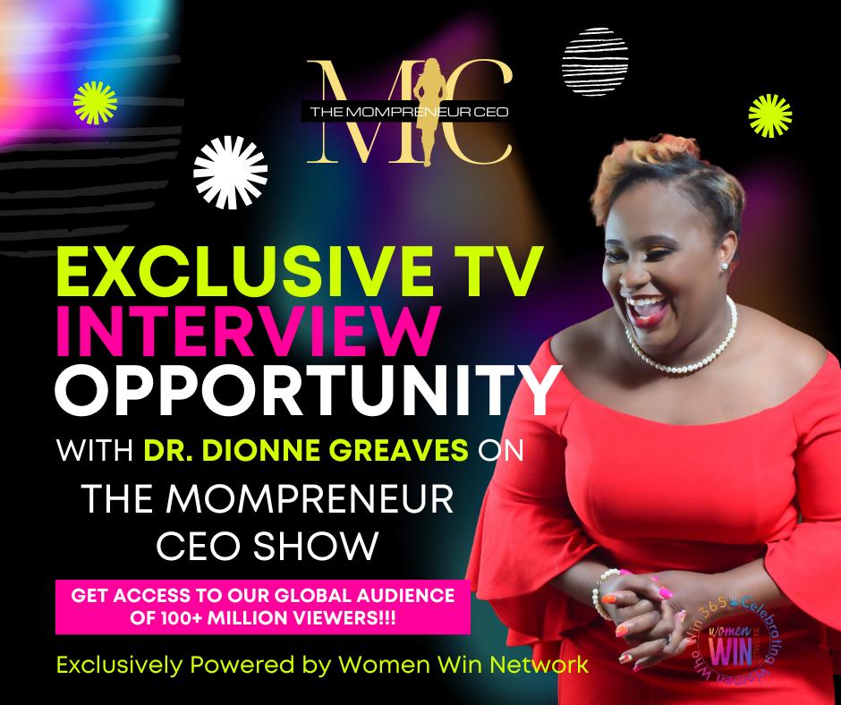 DR. DIONNE GREAVES, THE MOMPRENEUR CEO IS A GLOBAL EMPOWERMENT SPEAKER, MOMPRENEUR COACH, AND MENTOR WHO IS KNOWN FOR HER INNATE ABILITY TO EMPOWER WOMEN, ESPECIALLY MOMS THROUGH ENTREPRENEURSHIP.