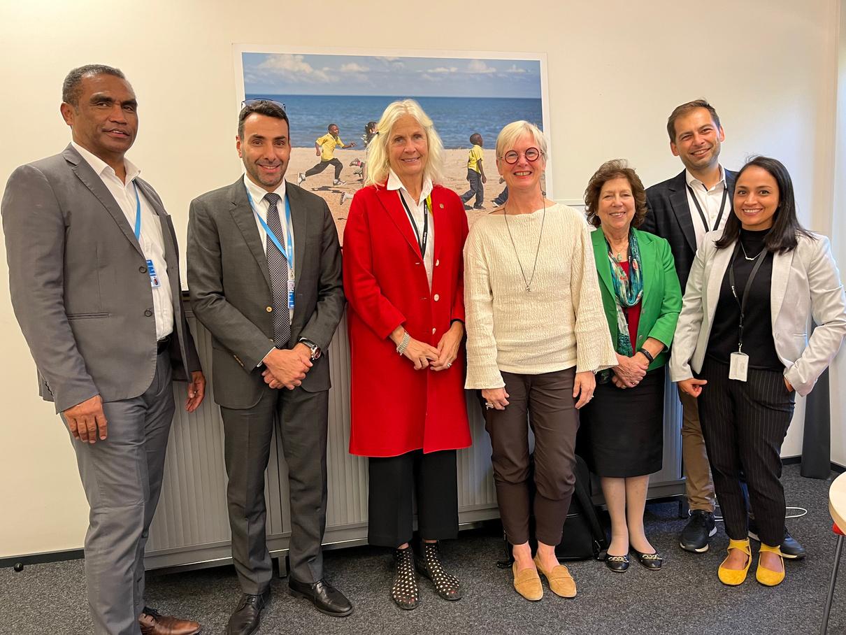 In a short but fruitful stay in the Swiss city, President Stavdal began her agenda meeting Dr Bente Mikkelsen, director of the division of Noncommunicable Diseases of the WHO. Also presentatthemeetingwereDrTemoWaganivalu, and Dr Slim Slama, unit leaders at the NCDs DepartmentattheWHO