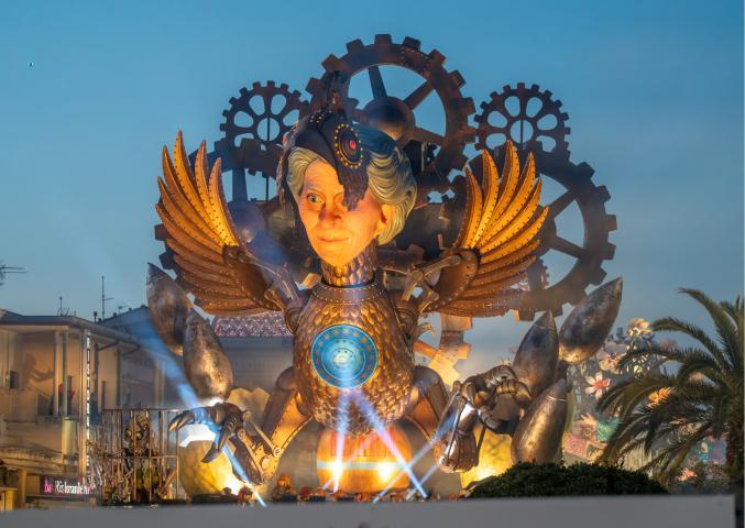 A Viareggio, invece, il Carnevale alza la voce. I giganteschi carri in cartapesta sfilano come