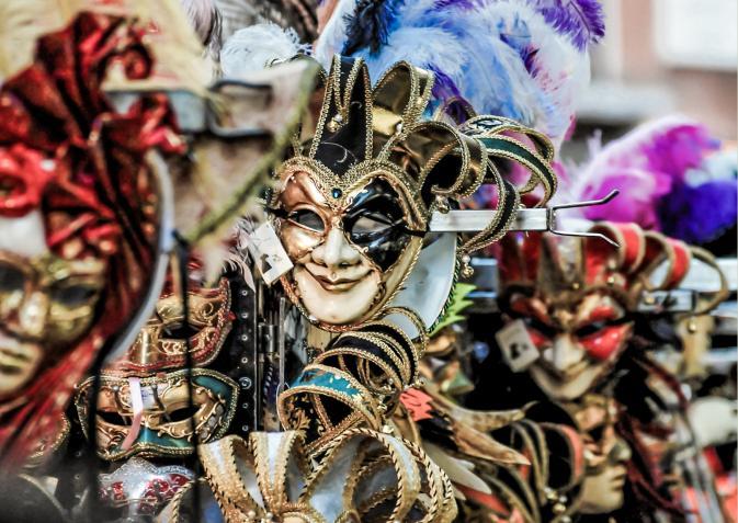In questo panorama, l’Italia è un piccolo universo a parte, un Carnevale diffuso che cambia volto da città a città. A Venezia, la maschera è eleganza e mistero. La Bauta, la Moretta, i costumi d’epoca trasformano la città in un sogno sospeso, dove l’anonimato non nasconde, ma libera. Dietro una maschera, tutti possono essere chiunque.