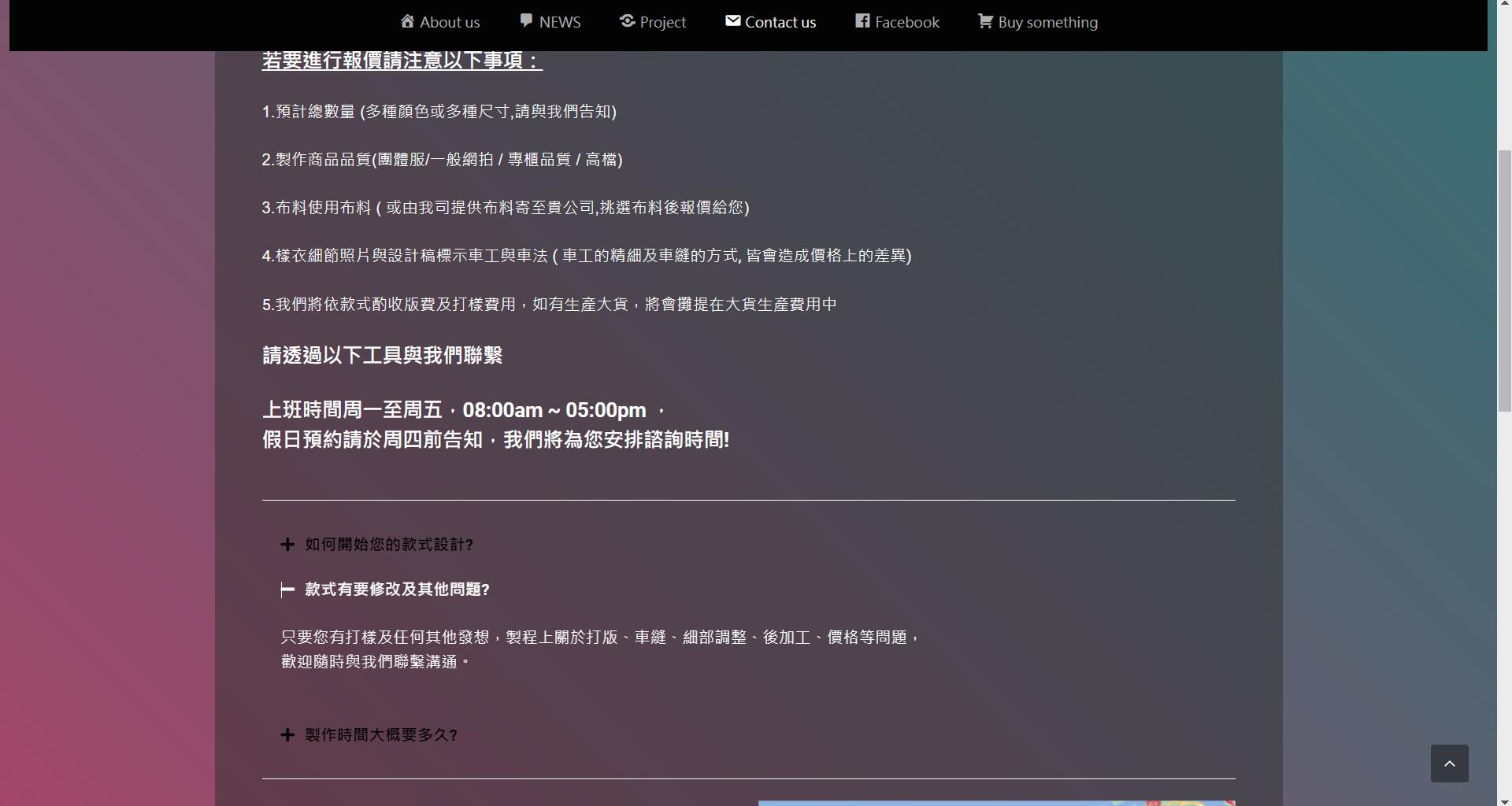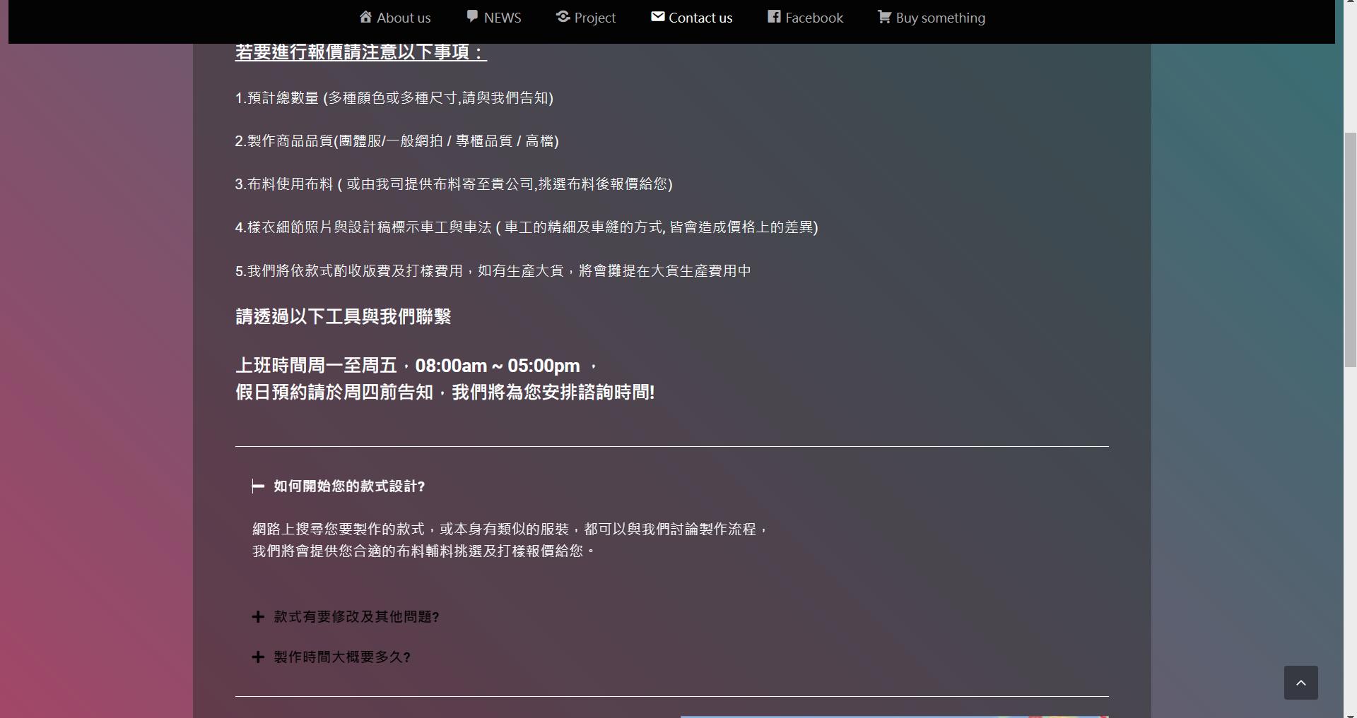 介紹商家提供的主要服務範疇, 從設計發想到商品製做的一貫流程, 讓顧客在與商家聯繫前, 可以有基礎上的了解,並確定方向。