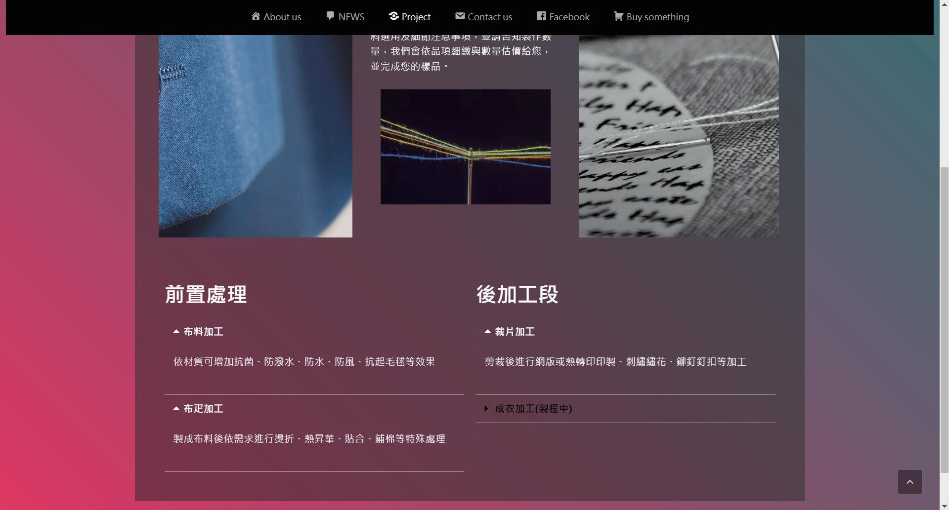 我們有完整的裁剪、車縫、印花、刺繡、整燙包裝等。一貫製程技術, 爲客戶提供專業全面的技術,及提供客戶安心又可靠的MIT保證。