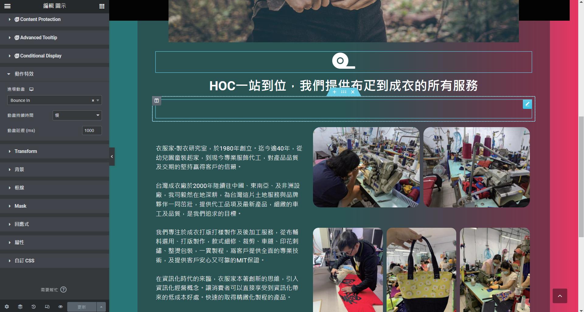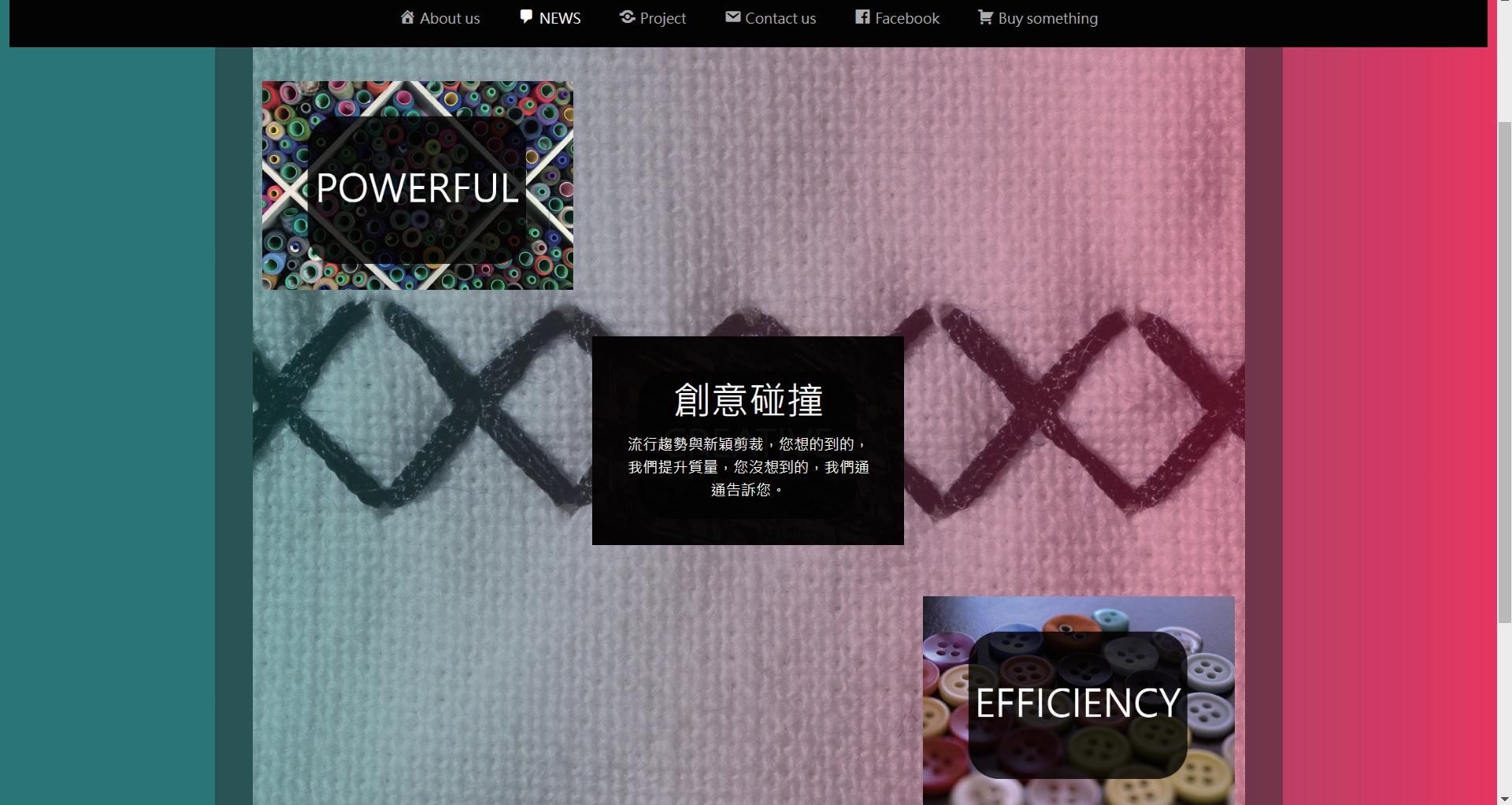 在圖片應用中再次使使用HOVER, 並強調傷下能給予客戶的服務, 凝聚力量、創意碰撞及品質效率, 告知瀏覽者商家對於本身品牌的堅持。