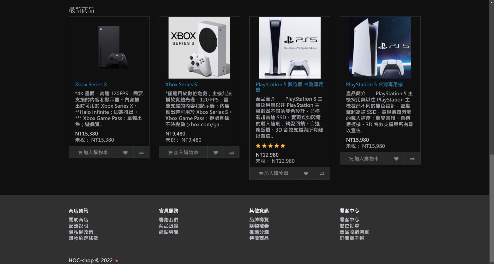 除一般圖檔嵌入及商品介紹外, 可為自家商品進行特賣、紅利等設置, 另有商品評論(後台先進行評核才會顯示), 顧客設置我的最愛商品等完善介面操作。