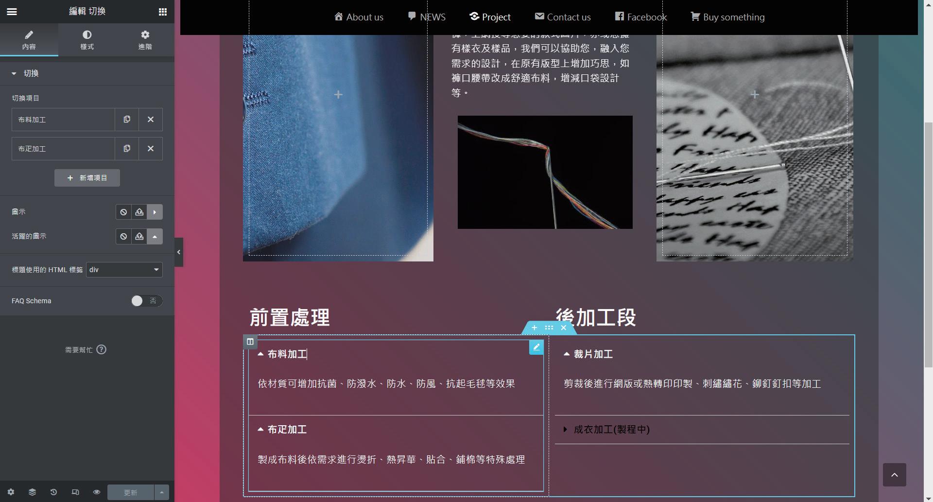 如圖 “前置處理”為全部展開 “後段加工”為只有展開上方內容 讓客戶依需求點選。