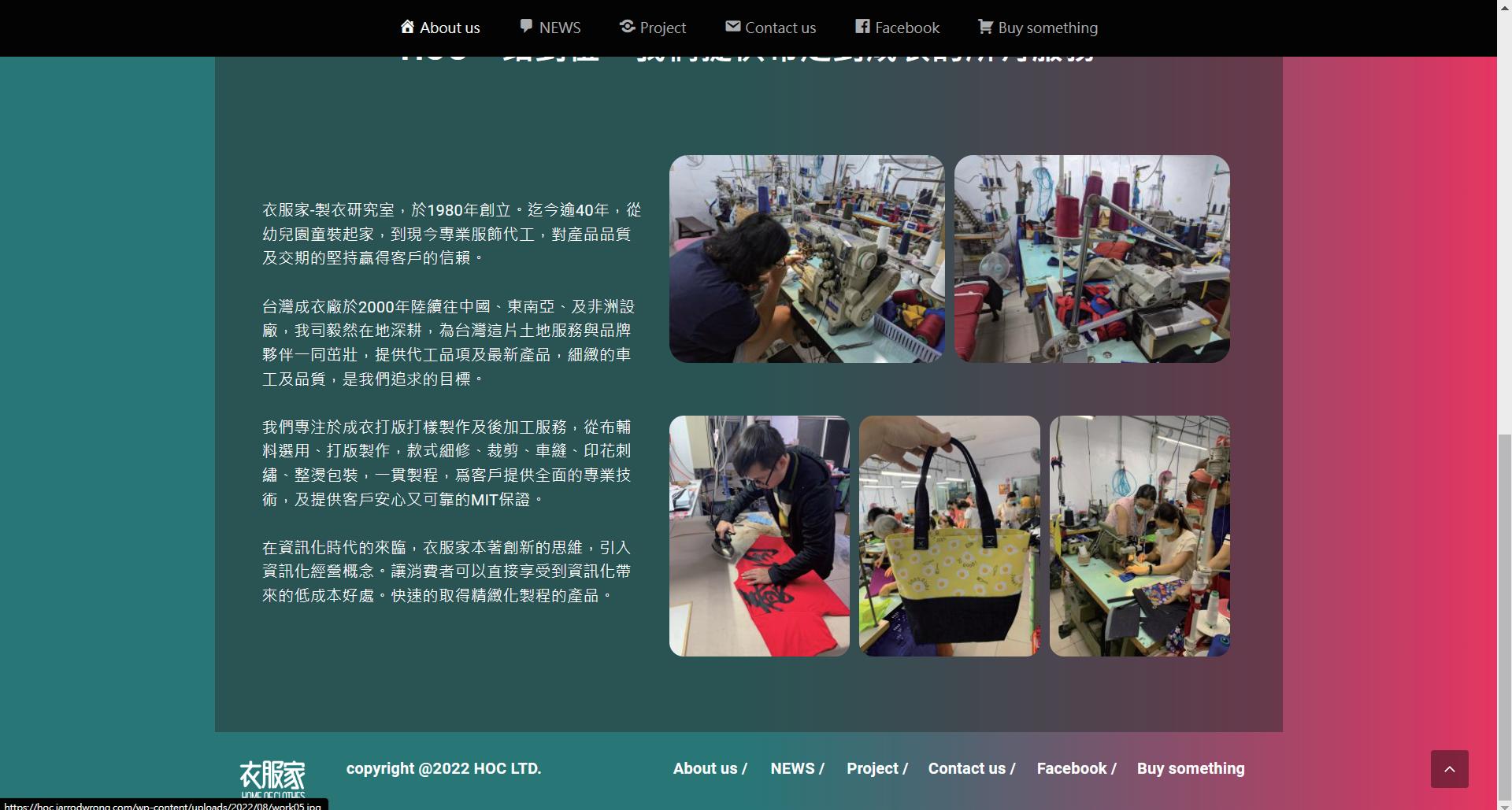 衣服家,於民國69年創立。迄今近30年,對產品品質上堅持及客戶需求的滿足, 近30年來一路秉持著技術、創意、全面品管、客製服務,贏得口碑的肯定。