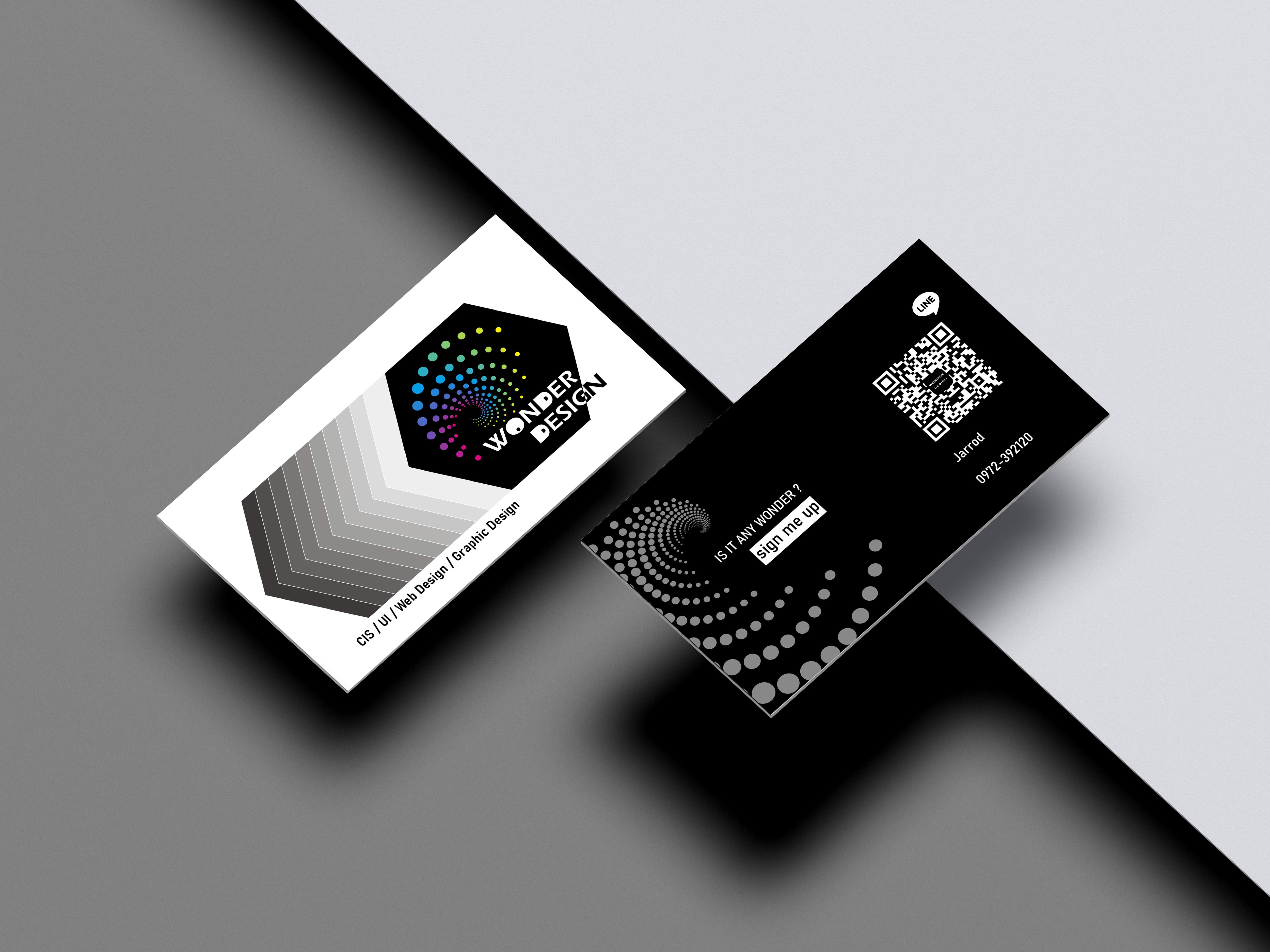 名片設計 CIS / UI / Web Design / Graphic Design 正面 名片規格 尺寸 9.2cm x 5.4cm 製程 雙面印刷 雙面霧膜 + 雙面局部光 正面局部光 IS IT ANY WONDER ? 背面局部光 IS IT ANY WONDER ? 背面