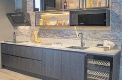 van de keuken wordt deze op maat geleverd met uitstekende service. De technische vaardigheden van Tim de Marie komen daarbij om de hoek kijken, die zeer kundig de keuken zelf komt installeren. Erwin: “Ik hoef geen monteur te bellen en te vragen wanneer men tijd heeft om bijvoorbeeld een vaatwasser te installeren. Dat kan soms drie weken duren en zolang willen wij een klant niet laten wachten. Tim kan er direct werk van maken als het apparaat bij ons als nalevering bij ons binnenkomt. Een service die hij steeds meer is gaan oppakken naast de verkoop in de showroom”, zo vullen vader en zoon elkaar goed aan op het gebied van ervaringen en veelzijdigheid. Bovendien is het plezier dat die twee ervaren bij het draaien van de keukenwinkel niet gedreven door zoveel mogelijk keukens wekelijks te moeten verkopen. “We moeten ons brood ermee kunnen verdienen, maar niet met het mes op de keel. En dat is de afgelopen vier jaar goed gelukt”, aldus Erwin
