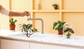 Zowel in roestvrij staal als in zwart is de Front een uitgesproken verschijning in de keuken, met een vernieuwde bediening aan de voorkantvan de uitloop.