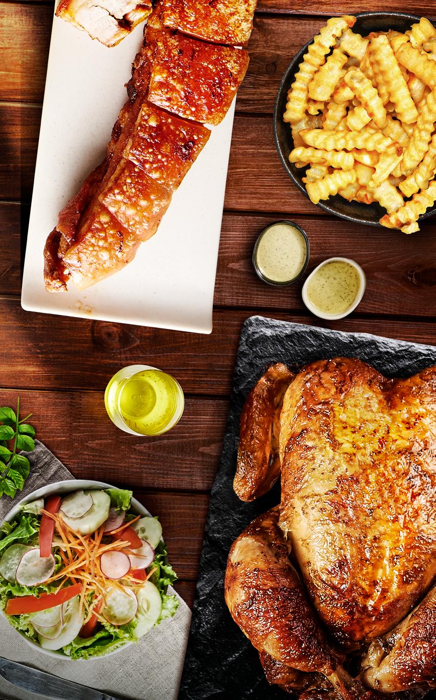5. CERDO HORNEADO + POLLO + PAPAS + ENSALADA + GASEOSA X 1.5 L