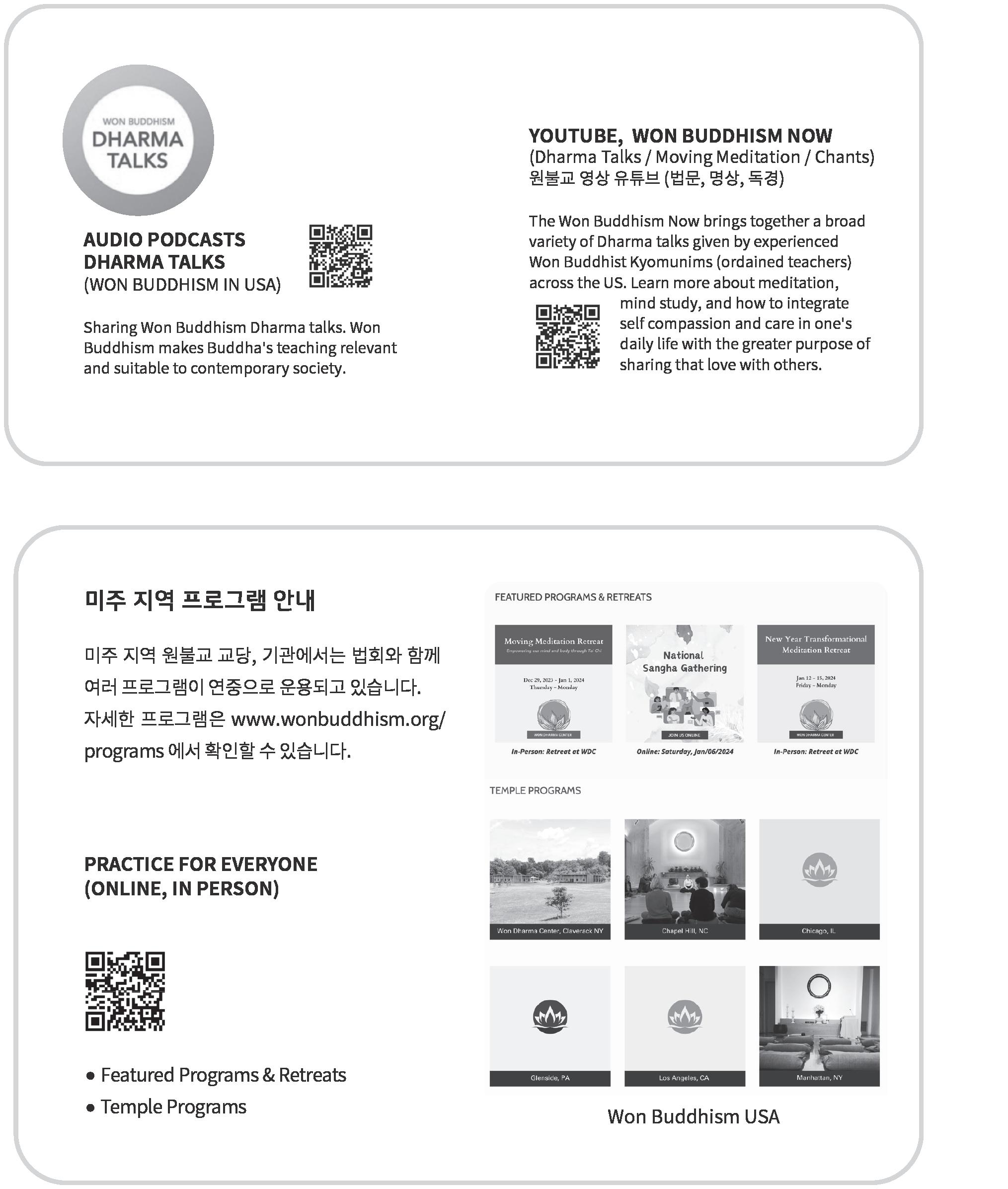 이 시간 저마다의 삶에서 발견한 일원의 소식을 나누며 함께 정진하고 함께 깨달아 한마음 한 세상을 밝혀가게 하시옵소서.