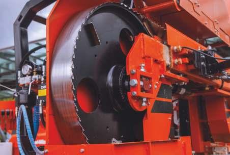 Její velkokapacitní hlava je vybavena nově vyvinutým systémem opásaného kola pilového pásu,kterýminimalizujevibrace,snižujenepříznivý vliv pilin a výrazně prodlužuje životnost pilového