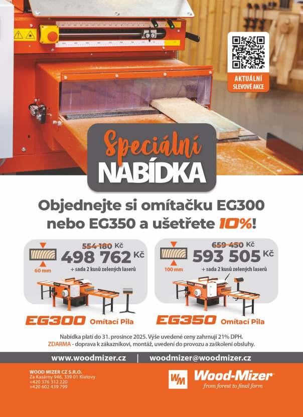 Hoblovka / tvarovačka MP410: Zvedá laťku v oblastizpracovánídřeva Dalším výrazným přírůstkem do řady 2025 společnosti Wood-Mizer je čtyřstranná hoblovka/tvarovačka MP410, která je určena především pro přesné opracování dřeva a dokončovací truhlářské práce. MP410 je stroj průmyslové třídy, který dokáže hoblovat a tvarovat všechny čtyři strany materiálu až do šířky 410 mm a výšky230mm,takžejevhodnýprovýrobuvšehood těžkýchtrámůažpojemnénábytkovékomponenty.