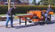 MobilnípřívěspilyEG300,navrženýpropohodlnou přepravu, má celkovou přípustnou hmotnost 1500 kg a brzděnou nápravu. Závěsné zařízení se při nepoužívání sklopí na stranu, což šetří místo při skladováníneboprovozu.