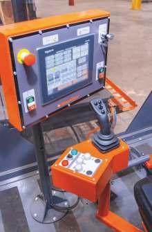 Ergonomický panel dálkového ovládání poskytuje snadný přístup ke všem podstatným ovládacím prvkům včetně nouzového stopu, směru podávání, nastavení rychlosti a polohování pilových kotoučů.