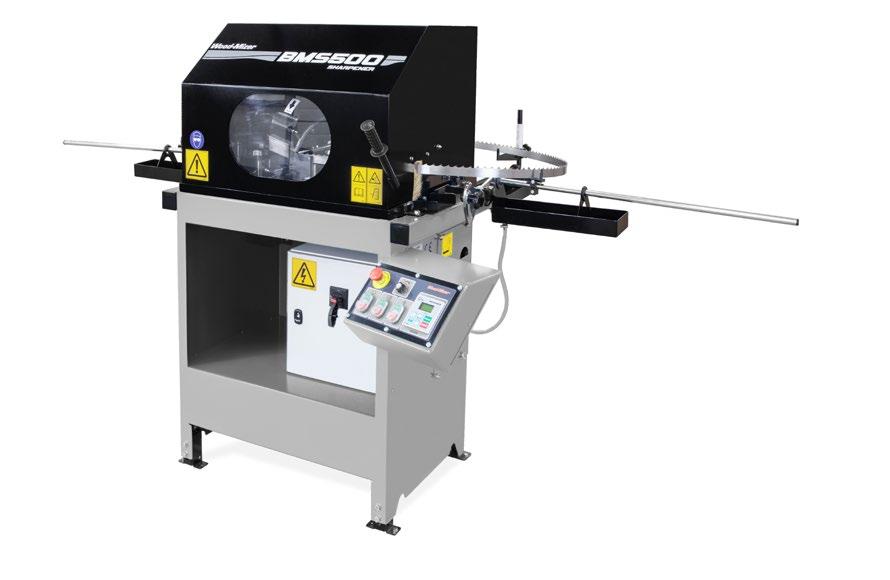Model BMS500 zaprojektowano z myślą o ostrzeniu brzeszczotów na skalę przemysłową. Ostrzarka wykorzystuje ściernice borazonowe o średnicy 203mm dla zapewnienia wysokiej jakości szlifu, przy dużych prędkościach, co znacznie poprawia wydajność pracy. Panel sterowania jest wygodny w obsłudze, ma wbudowany licznik naostrzonych zębów, regulator prędkości obrotowej i automatyczny wyłącznik, który aktywuje się po wyszlifowaniu zadanej liczby zębów. Gradowanie brzeszczotu odbywa się automatycznie.