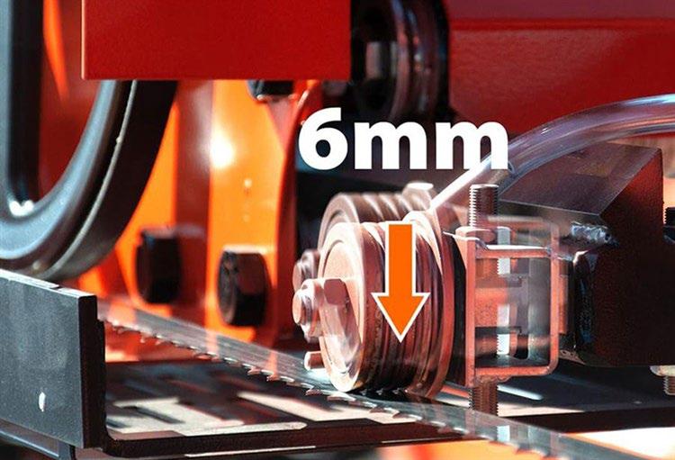 2,5 mm, co przekłada się na ponad 25% wzrost uzysku przecieranych desek na kłodę, w porównaniu do cięcia trakiem tarczowym lub piłą łańcuchową.