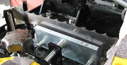Prilikom postavljanja nove tračne pile na stroj, napravite nekoliko rezova umjerenom brzinom kako biste “zagrijali” pilu. Također, smanjite piljenje površinskih rezova kada samo jedna strana razmetnutog zuba pili.