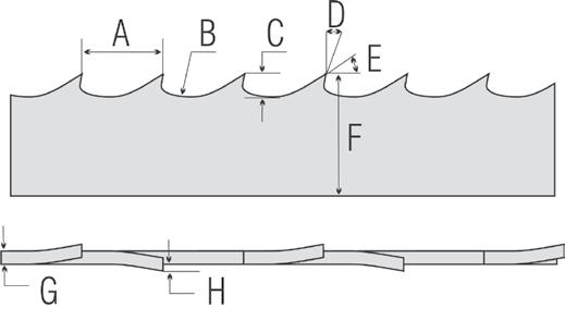 ġ Turbo tračne pile za pilane sa 7° - dostupne samo kod Wood-Mizer-a, ovaj profil visokih performansi s agresivnim leđnim kutom od 39° dizajniran je posebno za ekstremne i egzotične vrste tvrdog drveta kod piljenja sa motorima veće konjske snage (18,4kW/25KS ili više).