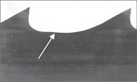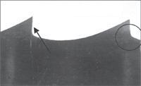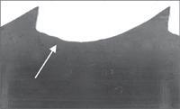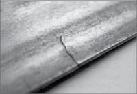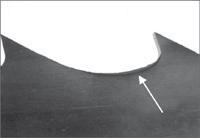 3. Puteți observa că discul abraziv CBN nu a ascuțit profilul complet al dinților, deoarece unghiul capului mașinii de ascuțit este greșit. Dacă nu utilizați un disc CBN, ci un disc de șlefuit standard, trebuie să verificați profilul discului respectiv. Un alt motiv posibil pentru această problemă este reprezentat de cama mașinii de ascuțit care este uzată și trebuie înlocuită. Fisurile încep din punctul în care discul abraziv ratează spațiul dintre dinții pânzei.
