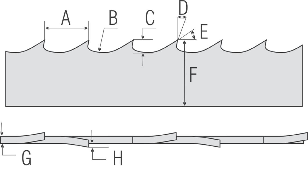 H.Ceaprazul dinților reprezintă distanța pe care dintele este îndoit dincolo de corpul pânzei sau dintele anterior al pânzei. Ceaprazul dinților realizează o cărare în lemn pentru corpul pânzei, care este măsurată prin grosimea tăieturii sau cantitatea totală de lemn îndepărtată de pânză odată cu fiecare trecere. Pânzele subțiri Wood-Mizer îndepărtează mai puțin de 2,5 mm de lemn, ceea ce produce cu aproximativ 20% mai multe scânduri din bușteni decât gaterele tradiționale sau fierăstraiele cu lanț.