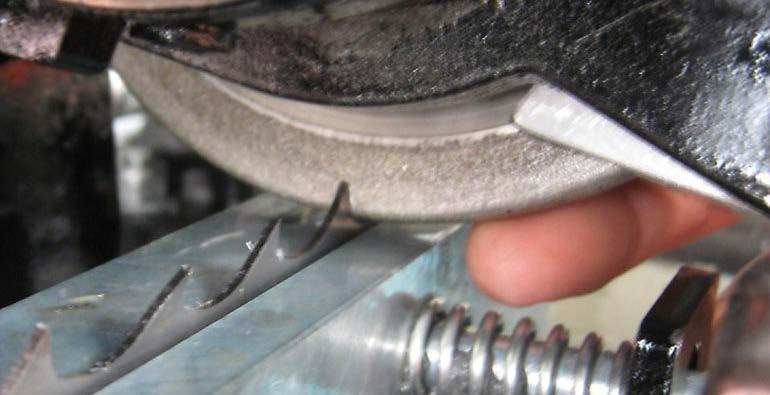 3. Asigurați-vă că împingătorul este în poziția corectă, astfel încât să împingă dintele care urmează să fie ascuțit.