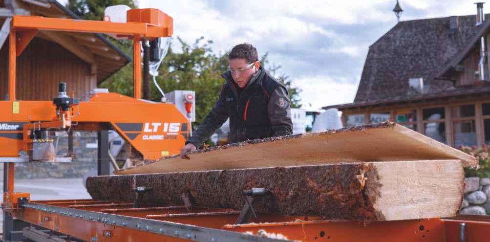 carpentry shops like mine, these machines are just perfect.” His LT40 sawmill is the backbone of the operation,especiallywithitshydraulicfunctionsand bed extension for long logs. “I used to work on sawmills without hydraulics and my back suffered,” he admits. “With the LT40, everything is faster, safer,andIcangetsomuchmoredoneinaday.”