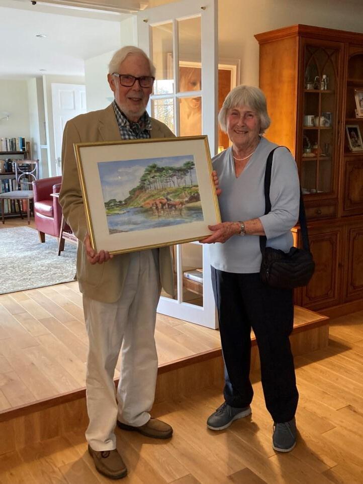 On 10 May committee members gathered with their partners to celebrate and thank two of their members for their long service to the society since its inauguration in 1994. The chairman, Nick Burgess, presented Gill Selley and Roger Stokes with framed original paintings of two local landmarks in recognition of the dedication and work each has put into the society over the years. Although Roger and Gill have decided to step down from the committee, both want to remain involved in the Society’s activities for the time being.