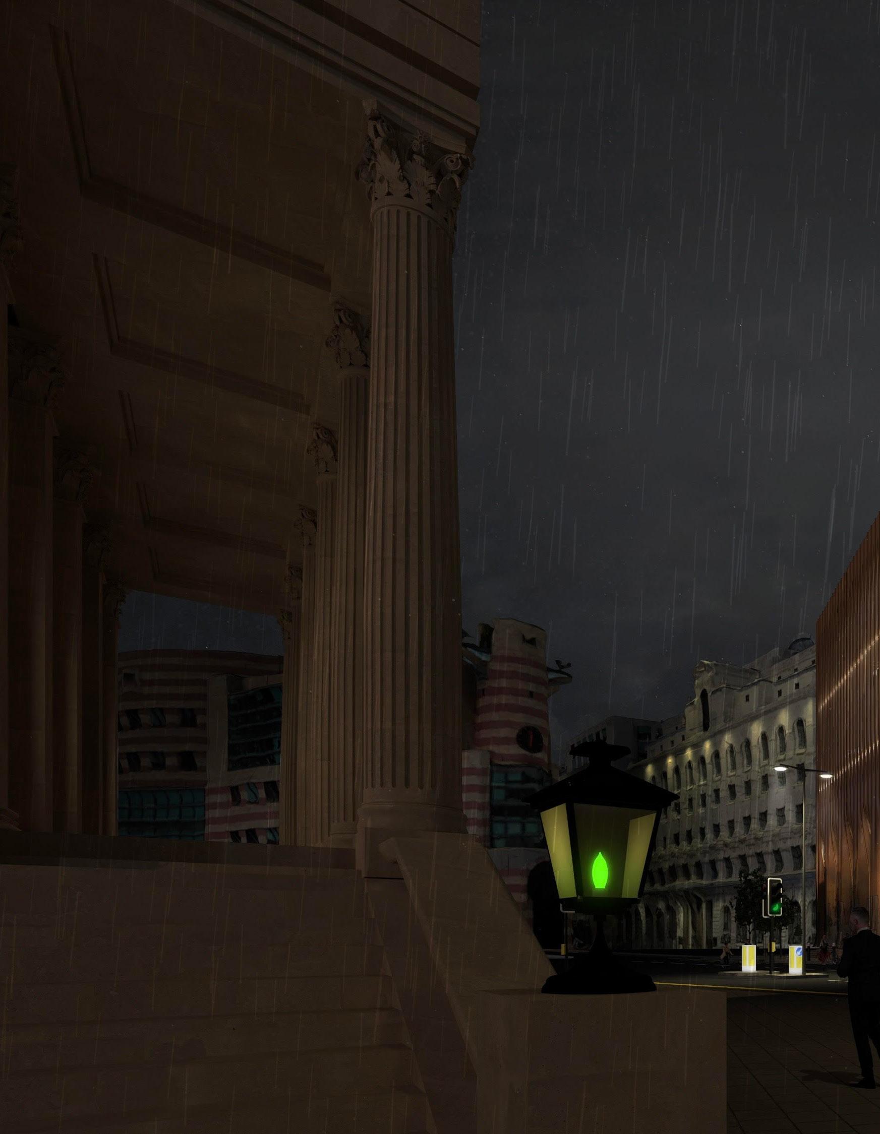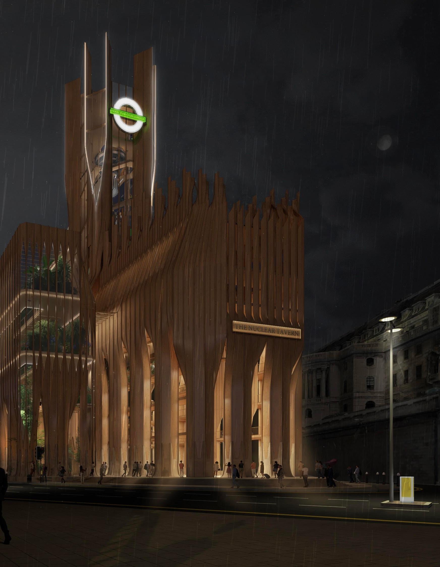 However, public opinion remains a barrier to its potential. As Transport for London (TFL) searches for localized electricity sources, the project attempts to civilize nuclear power production with a small modular reactor sited in a new underground station entrance at Bank, in London. Using advancements in technology, the nuclear process proudly exhausts the produce of electricity and waste steam, tracing and populating its architectural host. This offers a destination to one of the most liminal spaces in London, inviting people to stop and contemplate in awe of the exposed nuclear machinery and its surrounding architecture.