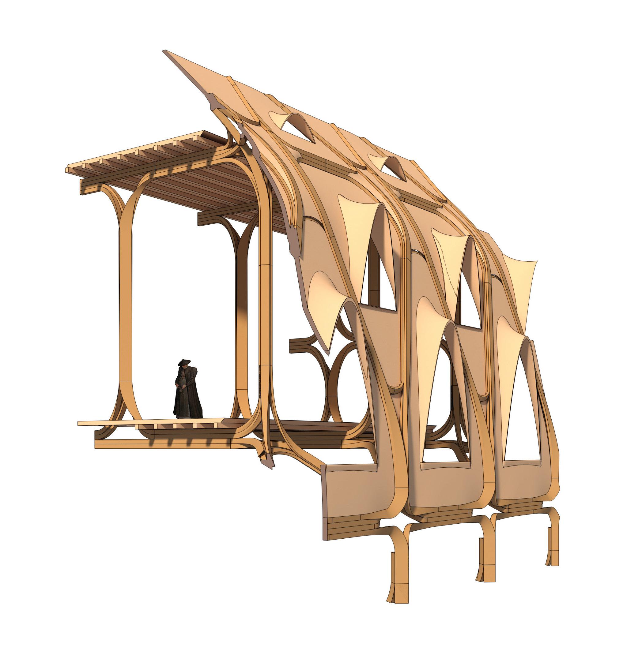 Utilizing emergent technologies and computational softwares, these proposals unleash newfound possibilities for the timber frame and panelized modulations. Being at once inspired by the ship building of former times or the form generation of other building materials, these projects refer to the former in order to project an alternative future. The projects seek to intensify the magnitude by which we might advance our ability to envision alternative realities within the building realm by utilizing the powers of parametric modeling and evaluative computational softwares.