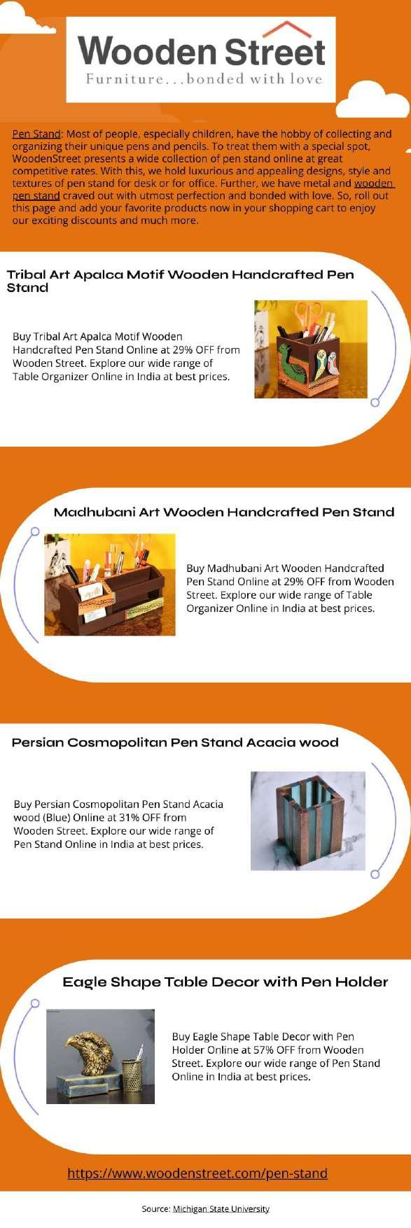 Pen Stand: Most of people, especially children, have the hobby of collecting and organizing their unique pens and pencils. To treat them with a special spot, WoodenStreet presents a wide collection of wooden pen stands online at great competitive rates. Tap on the link to visit website - https://www.woodenstreet.com/pen-stand