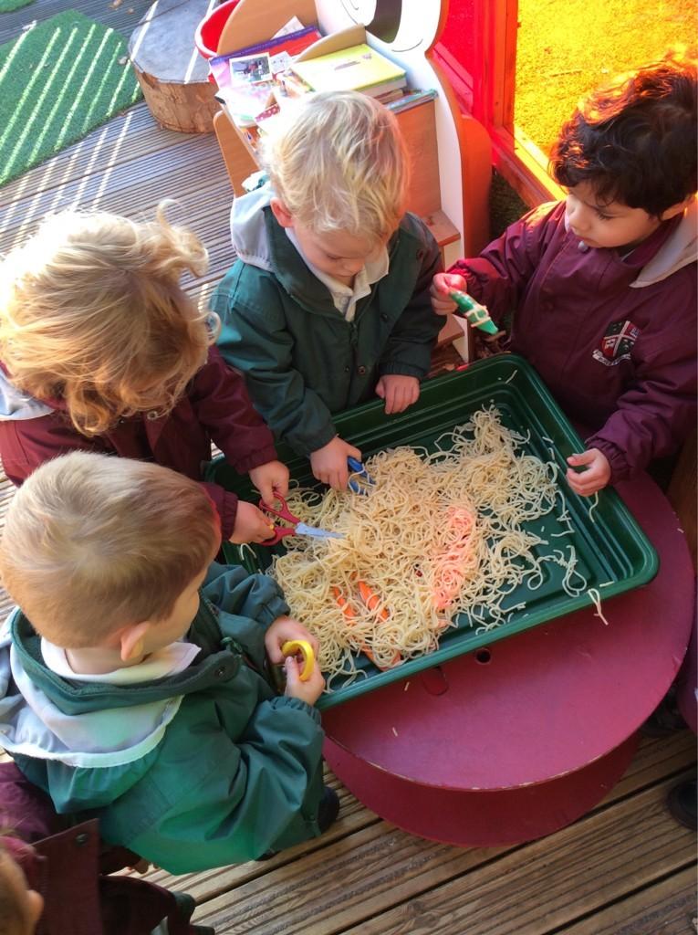 Pre Nursery have been getting very creative this week; decorating Autumn leaves; filling and emptying the rice and lentils; playing in the spaghetti; and making their own music. They have learnt lots of new skills such as filling and emptying, exploring sounds, exploring different senses and textures and using their fine motor skills to pick up spaghetti with tweezers.