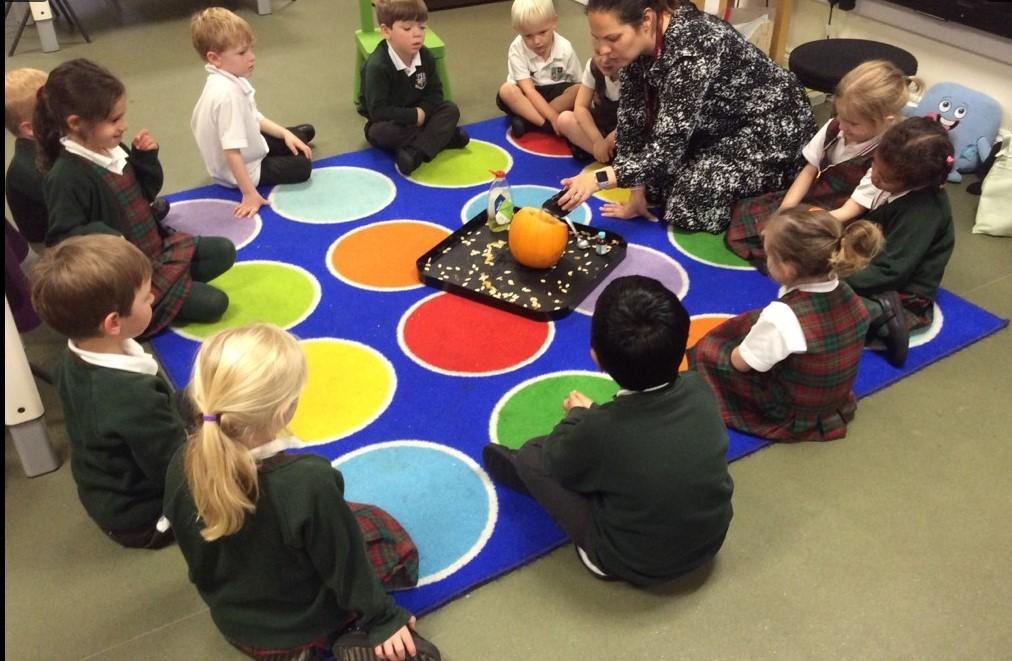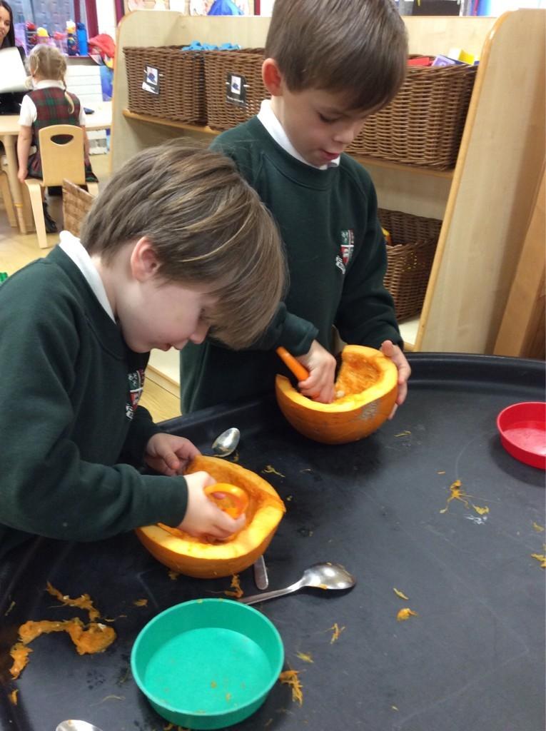have been looking inside pumpkins, talking about the seeds and what the inside of a pumpkin feels like.