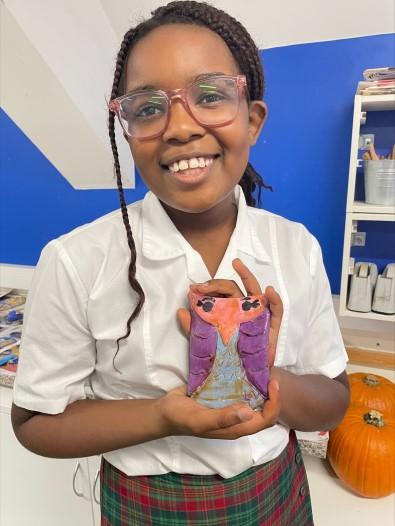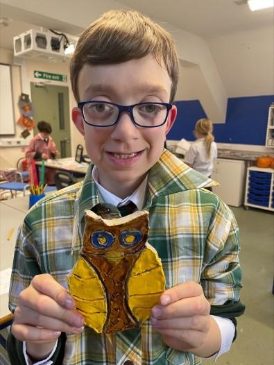 clay to sculpt Egyptian masks for their Ancient Egypt topic and in Clay Creations Club, the children enjoyed making and decorating clay owls.