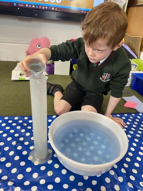 This week, Year 2 have also been measuring using balance scales to measure weight. They also looked at capacity and volume and how many cups of water each container needed to fill them. They measured in millilitres and litres and learned to read the scale.