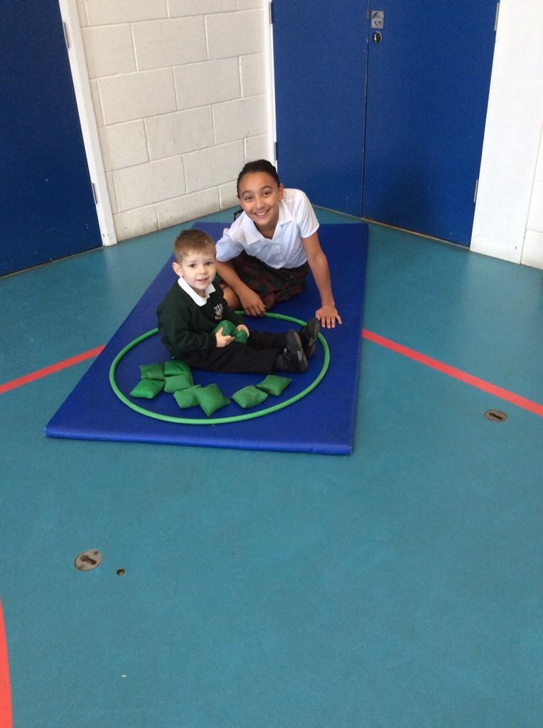 Ashdown have also had visitors from Year 6 who have been helping our youngest Ashdowners in Pre Nursery with their PE lessons: improving fundamental movement skills and matching beanbags and hoops together by colour.