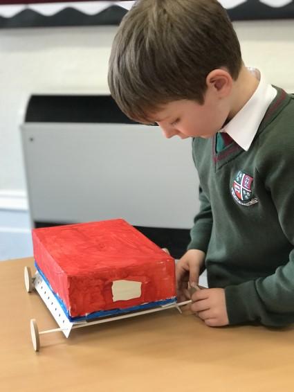 Year 1 have been busy designing and making London vehicles. Boxes were painted, axles carefully measured and wheels attached before adding the final details. Then the children evaluated their finished models thinking of ways they could be improved. Overall they were very pleased with their models.