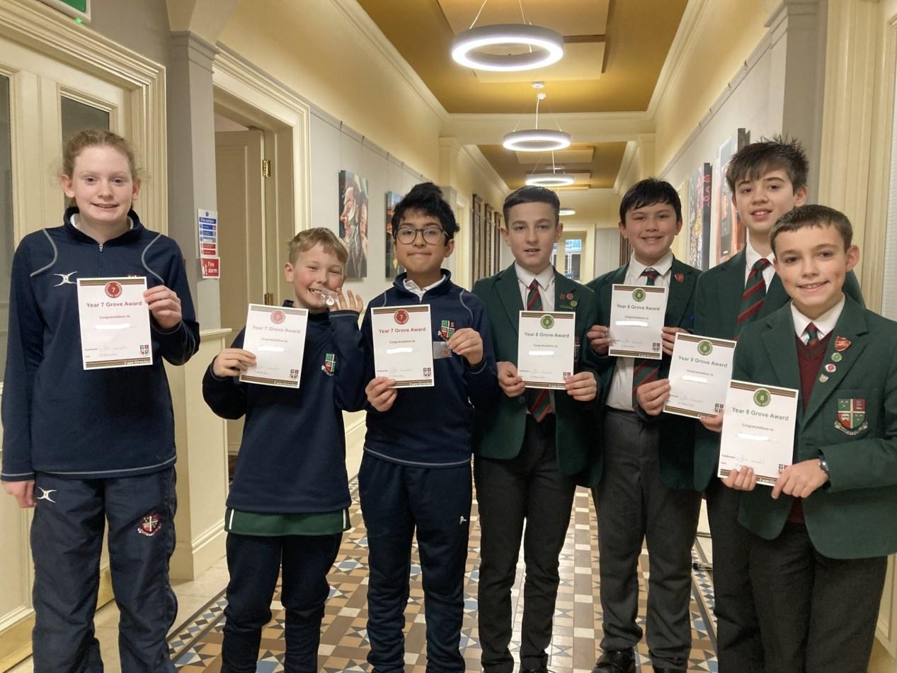 Congratulations to the following students who have achieved their Grove Awards; James N, Aydin R and Alice W (Y7), Seth B, Henry P, Shern V, Jacob Z (Y8) and Simeon T (Y9).