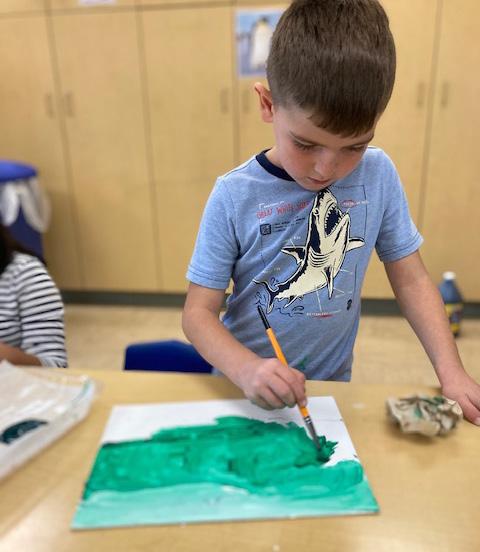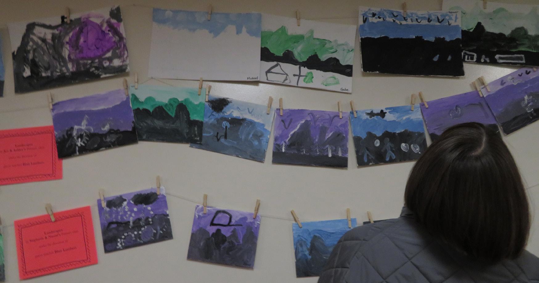 Primary and LE students made landscape paintings with guest artist Blair Lambert. All the artwork is now hanging and can be viewed in the back lobby just outside of the gym.