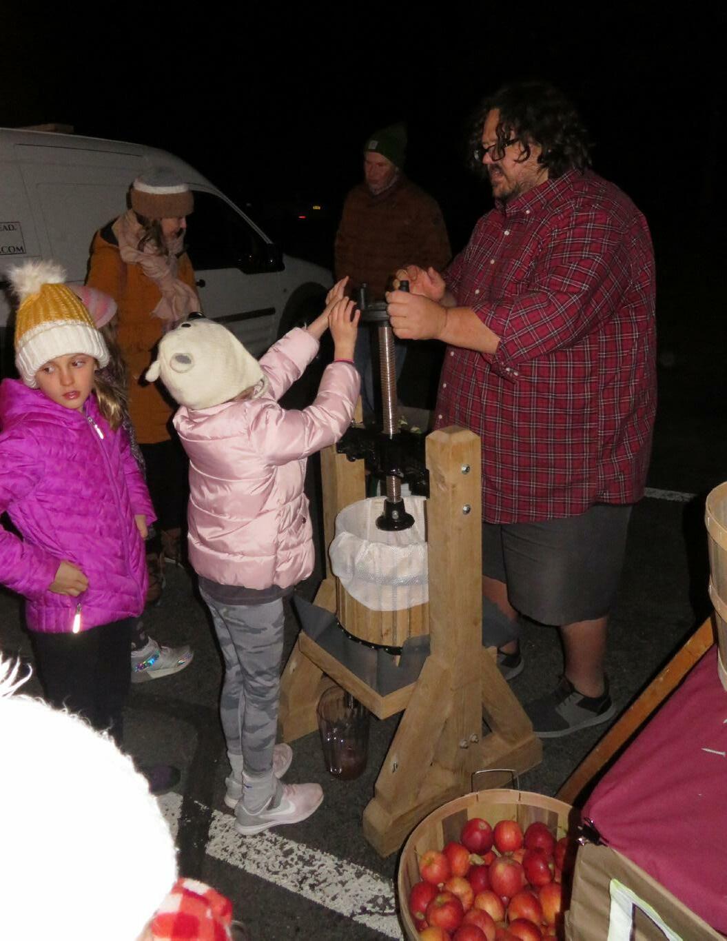 The event consisted of lantern making, wool spinning and weaving, WHMS Alumni running a shake your own butter bar and playing violin. Jesse Roberts constructed a cider press which was a hit, and Woodland Hill parent Andres Merger of the Bread Butler sold loaves of fresh baked bread. The Middle School students with Toni Roland ran a very successful bake sale which raised over $500 to donate to the South End Children's Cafe. Blair Lambert's artwork was showcased in the FLOCKart Gallery alongside intricate stick weaving created in her landart elective with Upper Elementary and Middle School students.